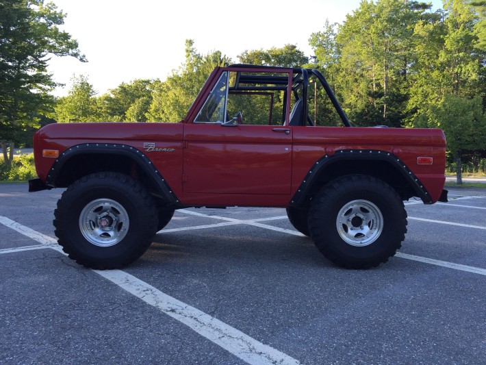 1973 Ford Bronco with a brand new Ford crate 306 motor 340 HP. Transmission was just fully rebuilt. Motor has about 2,000 miles on it and transmission has about 10 miles on it (I have paperwork on the motor and transmission which has a year warranty on it, I also have all the paperwork on recent and previous repairs which will go with the Bronco). Front end was just gone through and had bearings and tie-rod ends replaced. Anything it needed it got and it is nice and tight in the front end. It has a 6 inch Rough Country lift and 36 inch mud tires. It’s rust and rot free and a very nice driver quality Bronco. Paint is not perfect but very presentable (see pics). The frame is super clean with no patch work and no rot. Floor pans were replaced and patched, very clean underneath. Interior is very clean and I do have a black hardtop in excellent shape that goes with it. Everything works except the rear brake lights (will look into it before the sale). Not a lot of Broncos survived and these are hard trucks to find.