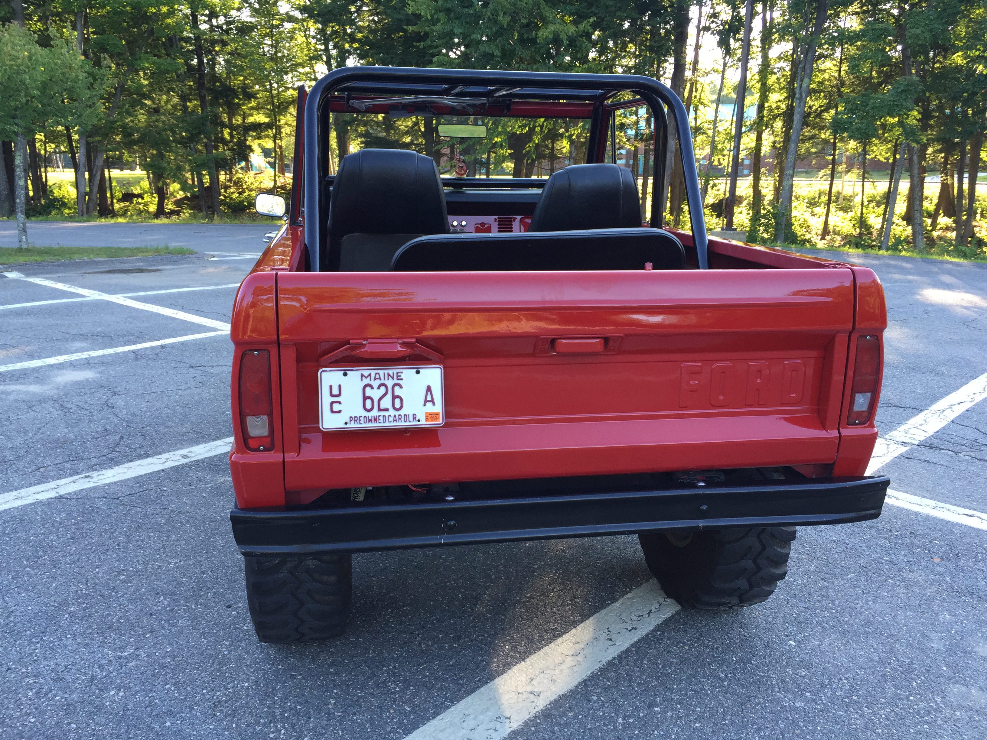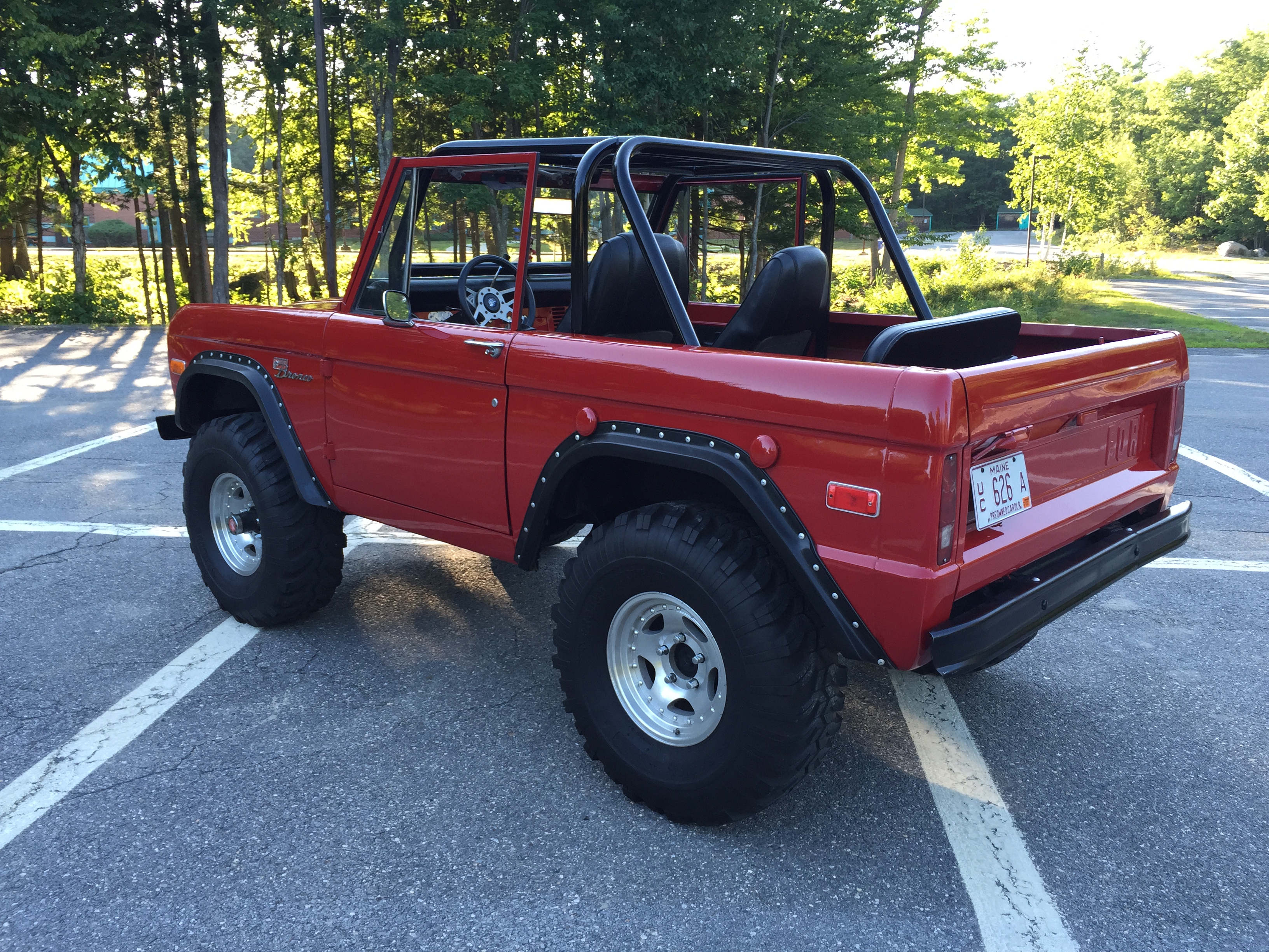 1973 Ford Bronco with a brand new Ford crate 306 motor 340 HP. Transmission was just fully rebuilt. Motor has about 2,000 miles on it and transmission has about 10 miles on it (I have paperwork on the motor and transmission which has a year warranty on it, I also have all the paperwork on recent and previous repairs which will go with the Bronco). Front end was just gone through and had bearings and tie-rod ends replaced. Anything it needed it got and it is nice and tight in the front end. It has a 6 inch Rough Country lift and 36 inch mud tires. It’s rust and rot free and a very nice driver quality Bronco. Paint is not perfect but very presentable (see pics). The frame is super clean with no patch work and no rot. Floor pans were replaced and patched, very clean underneath. Interior is very clean and I do have a black hardtop in excellent shape that goes with it. Everything works except the rear brake lights (will look into it before the sale). Not a lot of Broncos survived and these are hard trucks to find.