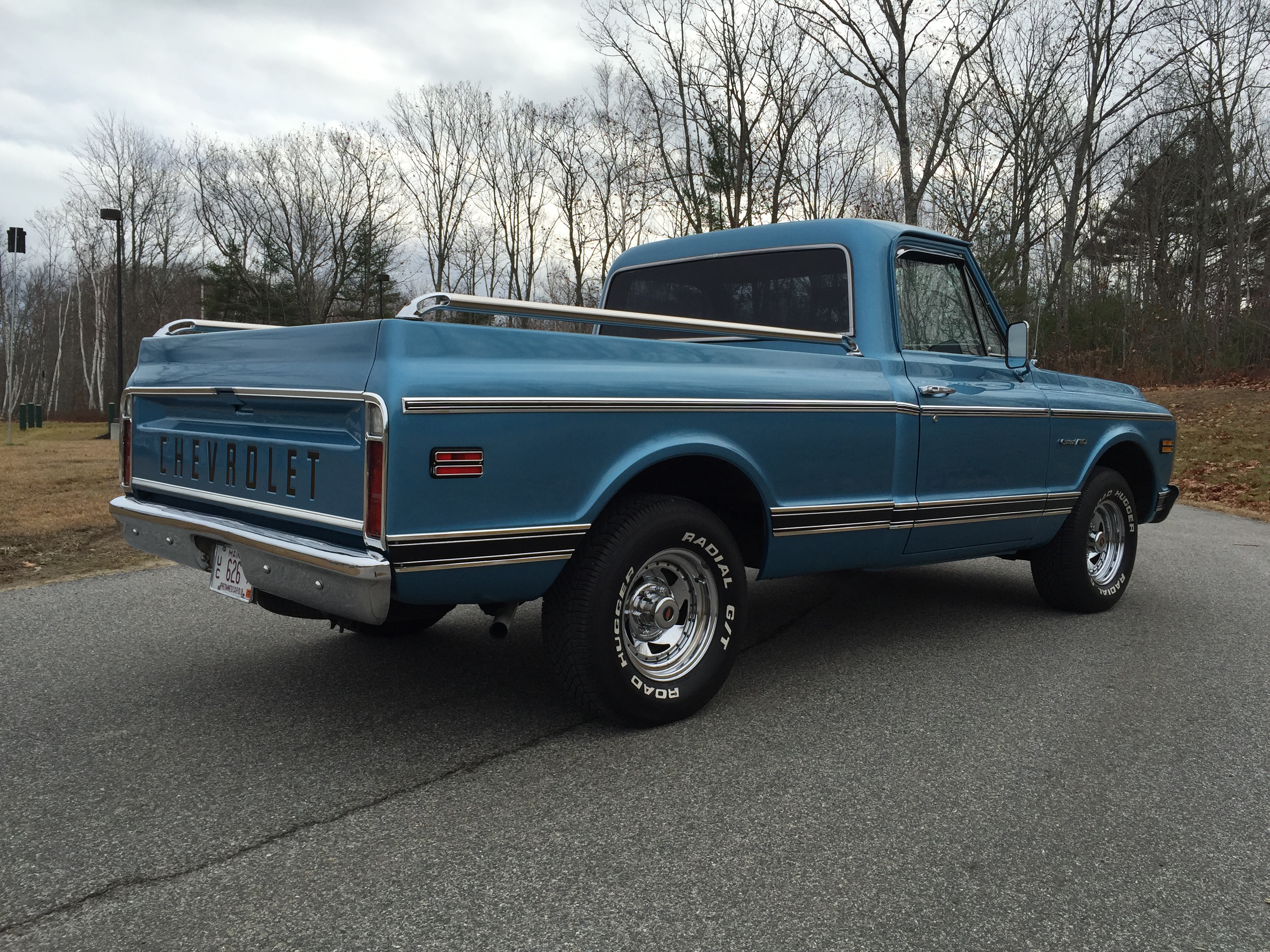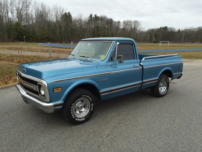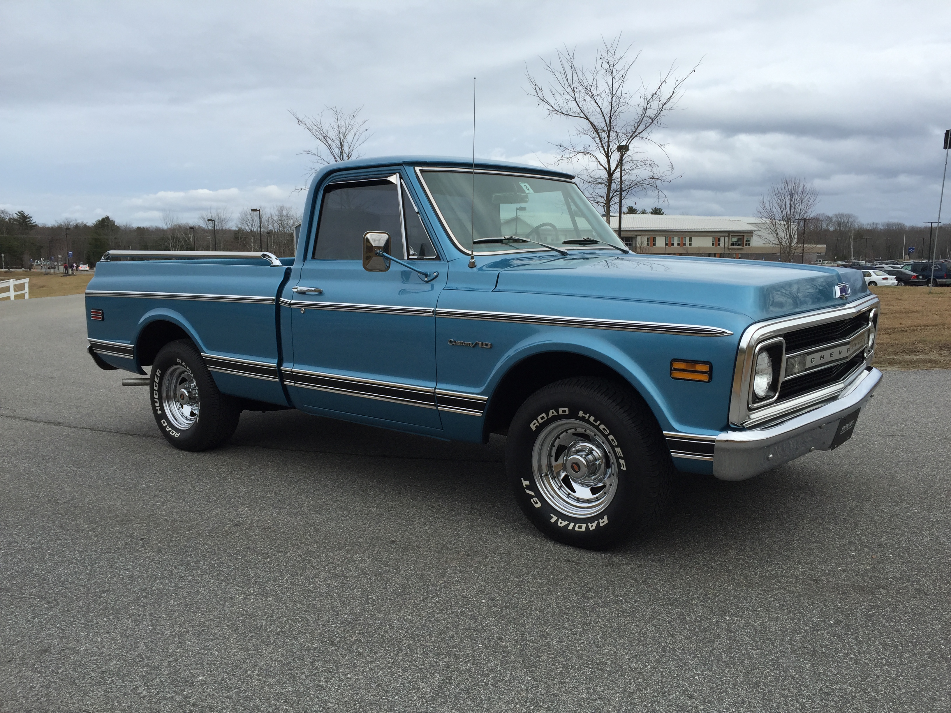 1970 Chevy C10 Custom Deluxe short bed with a Chevy 350 V8 in excellent condition. This truck is 100% rust and rot free, super clean inside and out. This is an un-molested and original truck. Paint job alone cost 8k a few years back and is still in excellent condition. No orange peel, no stone chips, no blisters, no not or rust. Interior is mostly original and in excellent shape. The interior has an excellent patina giving this truck a restored outside look with a nice charm inside. Underneath and the engine bay is very clean and solid, no rust issues. All the chrome and trim is in amazing condition, no issues there. The Chevy 350 V8 is super healthy, no smoke, no weird noises very powerful and sounds great. The truck has a TH350 transmission in it that shifts beautiful. Also has a 12 bolt GM rear end with highway friendly gears. It goes down the turn-pike at 75 MPH and cruises very nicely. Manual brakes and manual steering, just how an old truck should be. The truck has factory exhaust manifolds and a dual exhaust that sounds great, awesome sound that’s not annoying. This truck runs and drives like brand new. No issues, no leaks, NO bondo, its an all metal truck. Very quick and goes straight down the road with no vibrations or weird noises. Hit the brakes and it brakes straight with no issues. Everything works as it should such as blinkers, heat, brake light and so on.