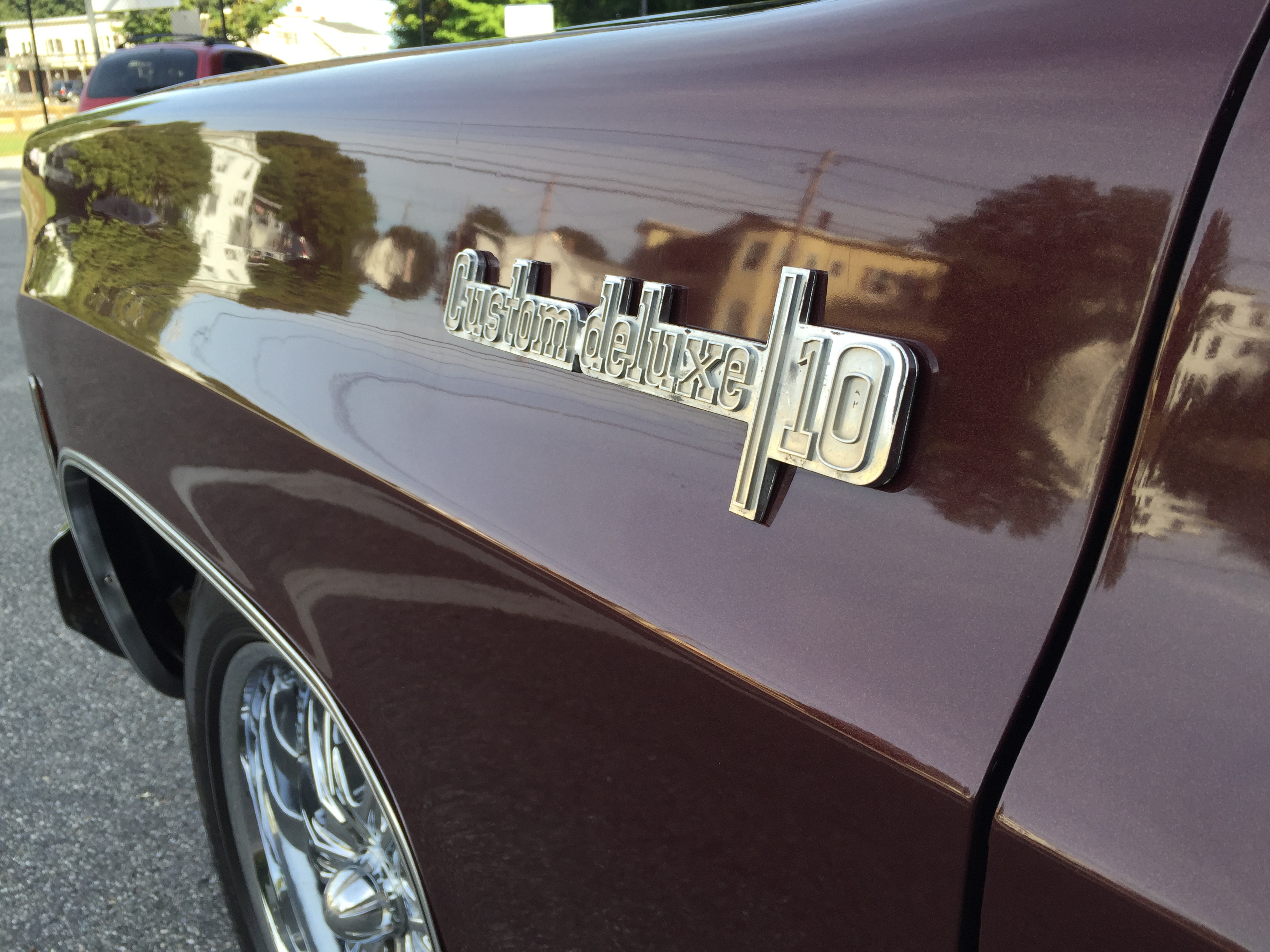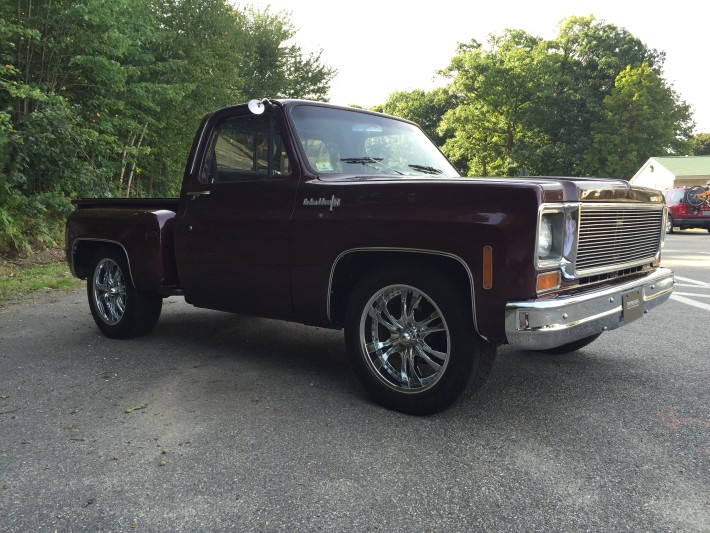 1973 Chevy C10 step side Custom Deluxe short box with a 350 V8 and a 4 speed Saginaw transmission in excellent condition. Clean title in hand and a documented 123,xxx miles on the odometer. It’s dropped 3 inches in the front and 2 inches in the rear giving it a level stance. It rides on 20 inch chrome Panther wheels and Pirelli tires. It retains its stock interior except the oil and temperature gauges and a column out of a later model C10 that includes a key lock, locking column. It also has a new hatch style toneau cover (lifts up off the bed and stays up with gas shocks). The truck also has power steering and power brakes with disk in the front. Super solid and clean truck, very nice driver quality. This truck is rust and rot free, not a single blister. Paint is very nice, no orange peel and shines like a mirror. It does have a few blemishes here and there but nothing major. The truck shows extremely well. Underneath is super clean, rust free and solid as well as the frame which is in excellent shape with no damage or patch-work. Chrome is in like new condition, no pitting or rusting. Trim work is original and shows age but is very presentable. Interior is super clean and in great condition (crack in the driver door armrest and two cracks on the dash where the center mono speaker is, very typical.. Everything works as it should, blinkers, brake lights wipers and so on. The wooden bed is also in excellent shape. This truck runs and drives very well. It goes down the road nice and straight, brakes straight and has no weird noises or vibrations. Remember, its an old truck riding on 20 inch wheels with a drop kit, it doesn’t ride like a Cadillac but trust me its a nice cruiser. Motor I was told was rebuilt 10k miles ago but I cant verify it. All I can say is that the motor sounds very healthy, has plenty of power and starts very easy. The truck has been gone through from front to back and it is ready to go with a clean bill of health. It’s not an extreme custom that’s over the top, it has a great balance between an old charm truck with some new school flare. A great cruise night truck and very unique, you don’t see a lot of these trucks at car shows. Will possibly trade up and add cash to the right 60-72, 2 door 4 speed muscle car or tri-five chevy. 207-400-5326